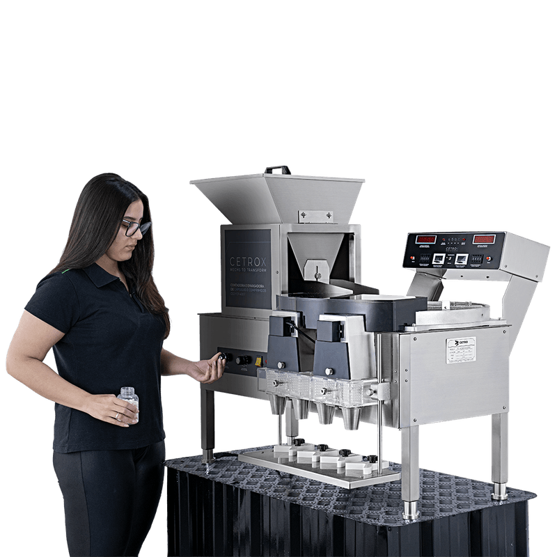 A Contadora e Envasadora de Capsulas e Comprimidos Semiautomática CSCM CF-400 T da Cetro é uma máquina totalmente produzida em aço inoxidável, com a mais alta tecnologia de seus sensores eletrônicos, calha vibratória e a qualidade de fabricação, o que garante que a máquina seja duradoura e mantenha a alta produtividade de seus recursos por um longo período.