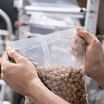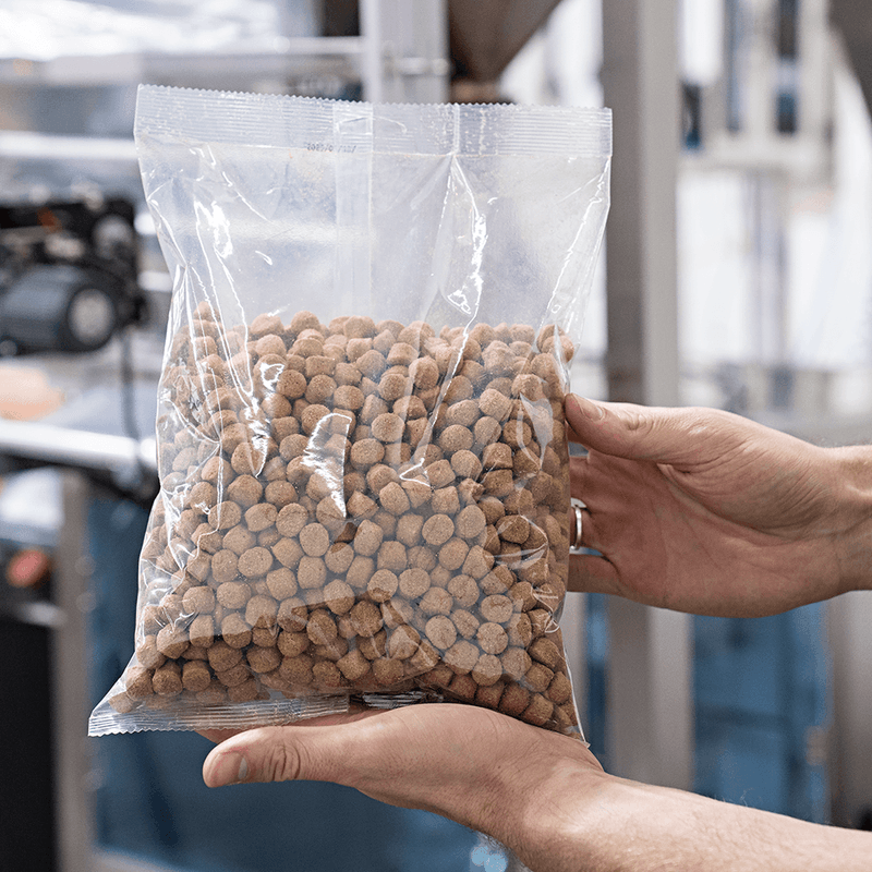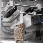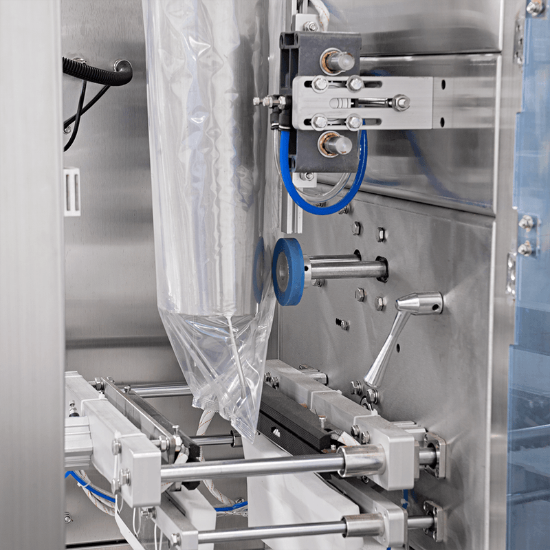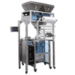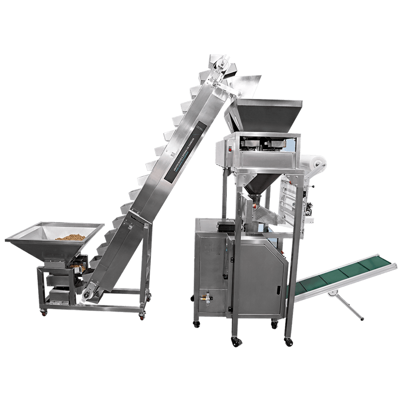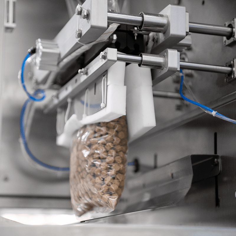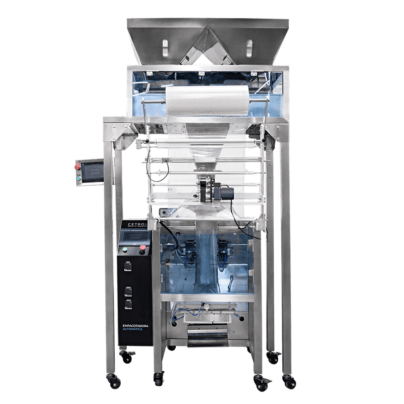 amendoim, castanhas, ração, trigo, açúcar, entre outros. O equipamento integra as etapas de dosagem, formação, selagem, abastecimento e coleta em uma única linha automatizada, garantindo a padronização das embalagens, a redução de perdas e maior eficiência produtiva ao longo de toda a operação.
