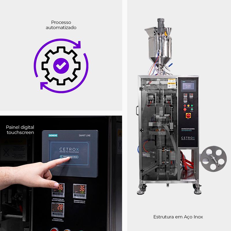 apelo visual e identidade própria.A Empacotadora Automática de Sachês Personalizados CAPM IS VP-50 da Cetro reúne alta tecnologia e capacidade de produção ao