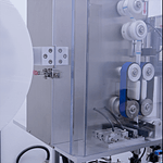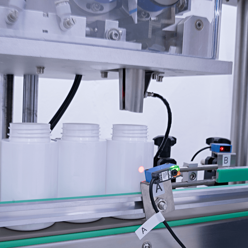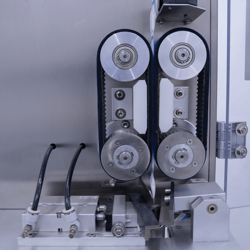 Depois de cortados, os sachês são depositados nos frascos com sincronia e exatidão por um sistema pneumático e o auxílio de sensores eletrônicos, evitando inserções incorretas e assegurando a continuidade do processo sem paradas indevidas.