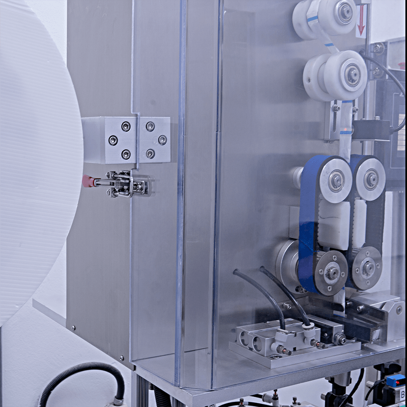 A Insersora trabalha de forma contínua utilizando uma bobina de sachês de sílica gel. Com sensores fotoelétricos que identificam as marcações nas embalagens, ela é capaz de cortar com precisão cada unidade de sachê, facilitando o controle sobre a produção e reduzindo desperdícios.
