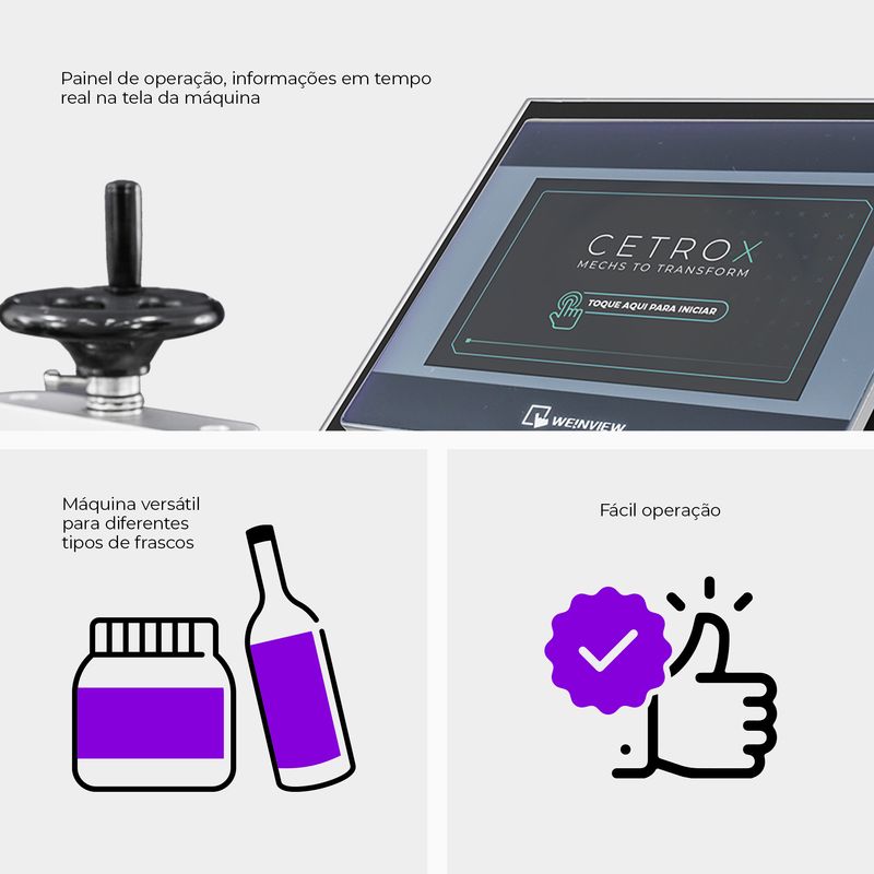 Com processos completamente automáticos, a operação do equipamento se resume ao abastecimento de produto através da entrada de sua esteira ou em uma mesa abastecedora acoplada no processo, o que faz com que a máquina da Cetro tenha a capacidade de ser o ponto chave da automação de seus processos.
