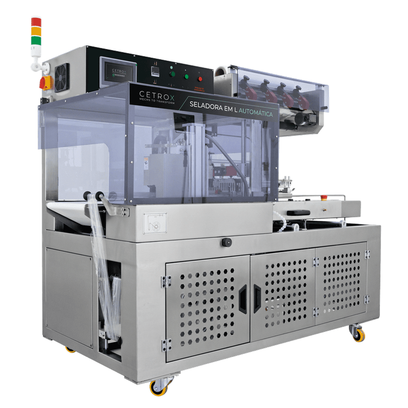 A Seladora em L da Cetro é automática e pneumática, sendo ideal para realizar a selagem contínua dos produtos de forma exata através de sensores eletrônicos e utilizando plástico termoencolhível poliolefínico. É um equipamento perfeito para ser usado em linha de produção em conjunto com o túnel de encolhimento, atendendo perfeitamente vários segmentos do mercado, principalmente de médio e grande porte, na selagem de produtos, como: caixas de lápis de cor, bandejas de verduras, legumes, caixas de alimentos congelados, entre diversas outros.
